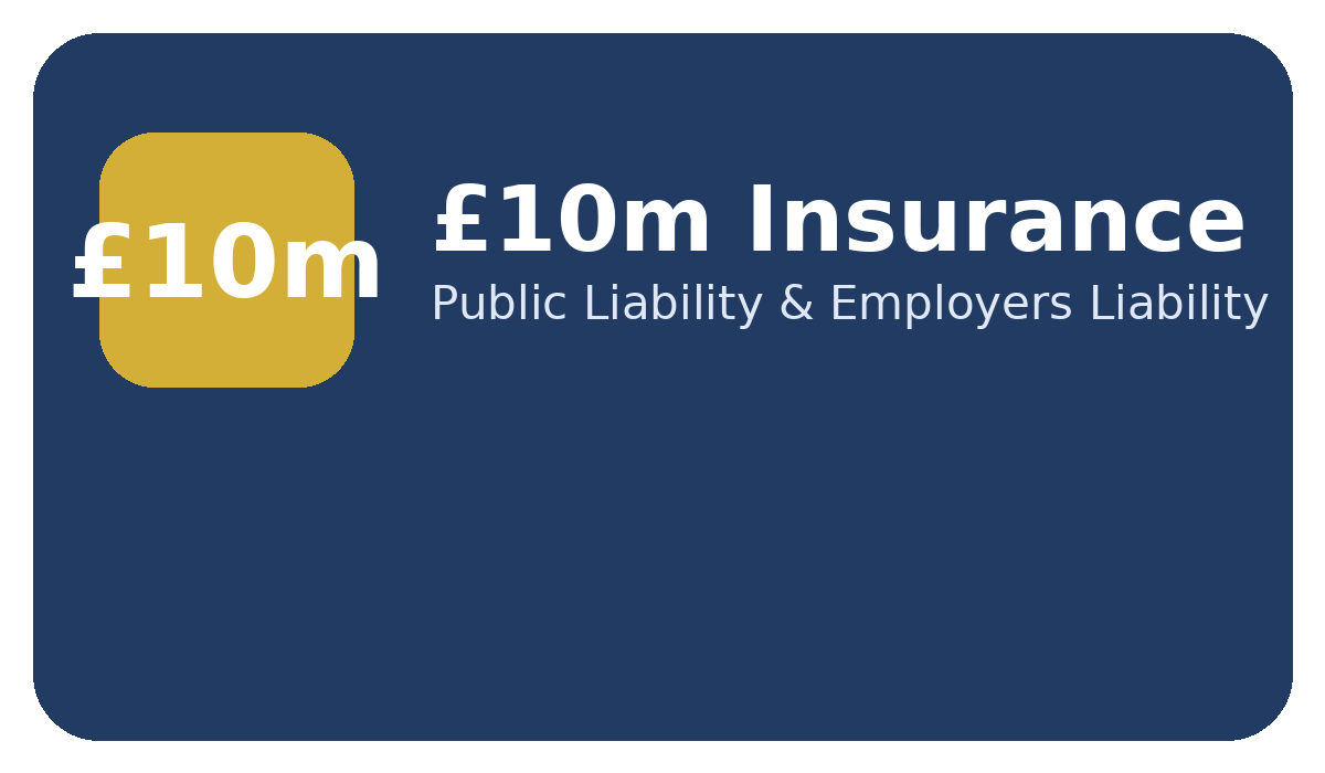 Up to £10m Public Liability — Up to £10m Employers' Liability